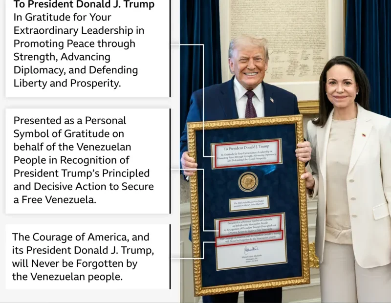 ஸ்டாக்ஹோம், ஜன.17; வெனிசுலாவின் எதிர்க்கட்சித் தலைவி… மரியா மெச்சாடோ தனது நோபல் பதக்கத்தை டிரம்பிடம் வழங்கியது சரியா? நோபல் கமிட்டியின் அதிரடி பதில்!